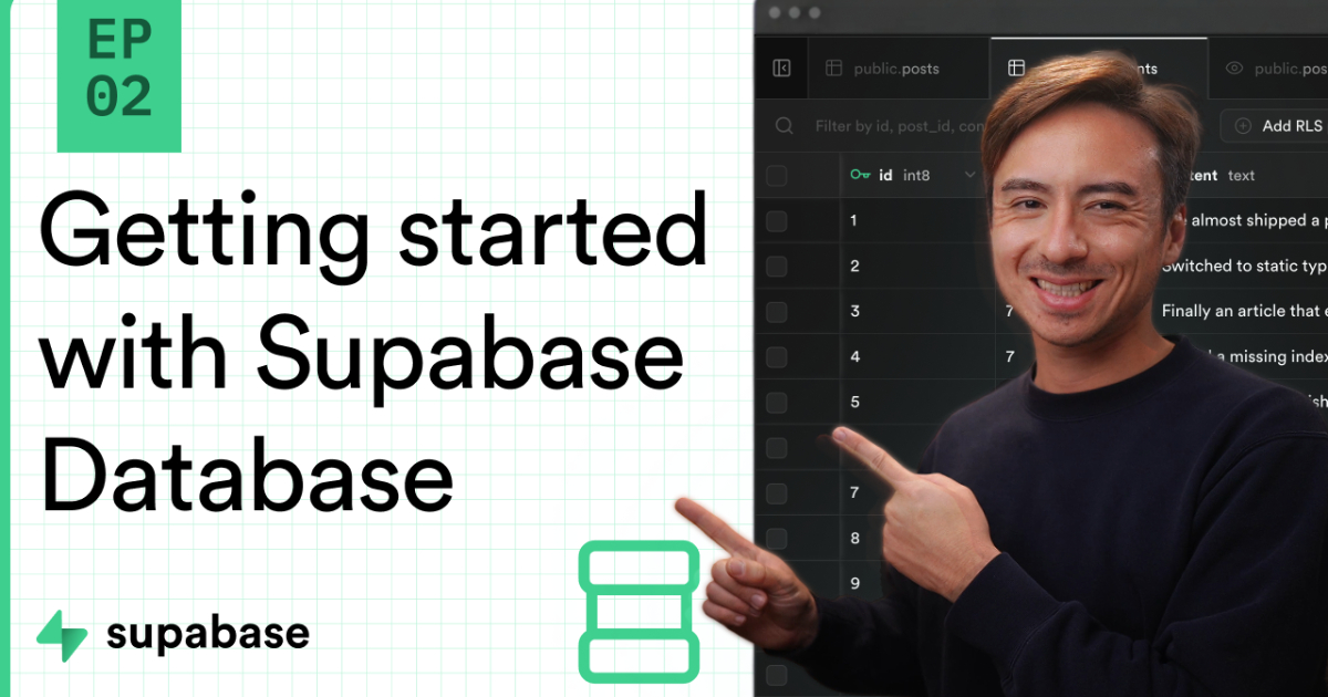 When you create a Supabase project, you get a whole Postgres database with a REST API server sitting in front of it. In this video, you will learn the basic database features of Supabase, and how to access them from the client libraries.